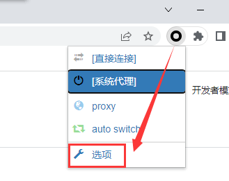 1.在浏览器扩展栏点击 Proxy SwitchyOmega 图标,选择 “选项”