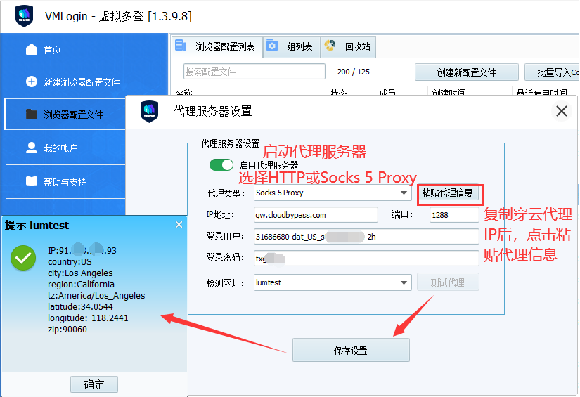 由于VMLogin支持浏览器指纹环境相互独立、不关联,配合穿云代理的动态住宅IP或动态机房IP,可以为您提供更加灵活、安全的跨境浏览体验。