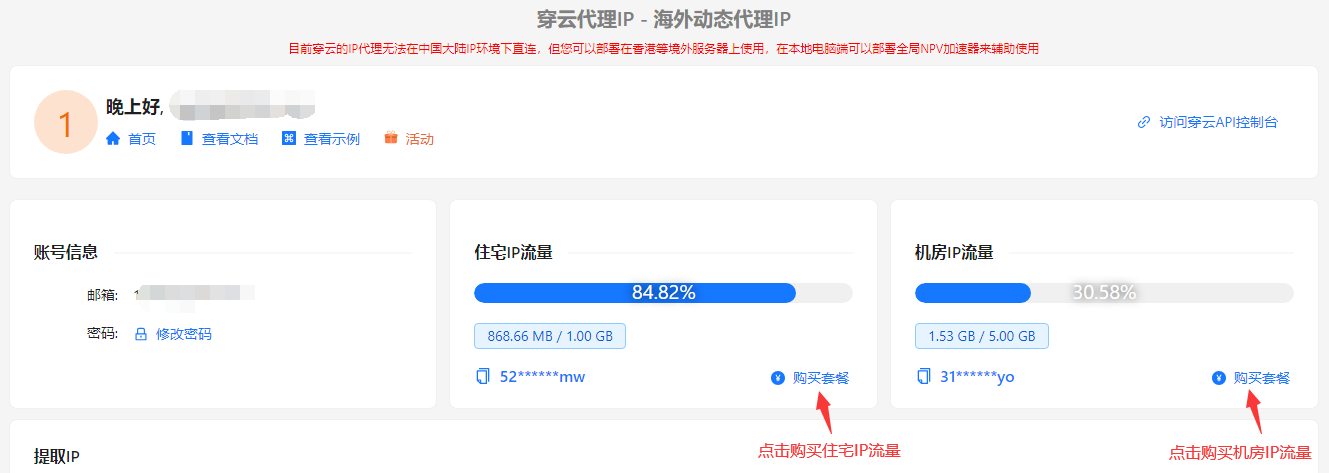前往穿云代理IP后台购买流量包: https://console.cloudbypass.com/#/proxy/login