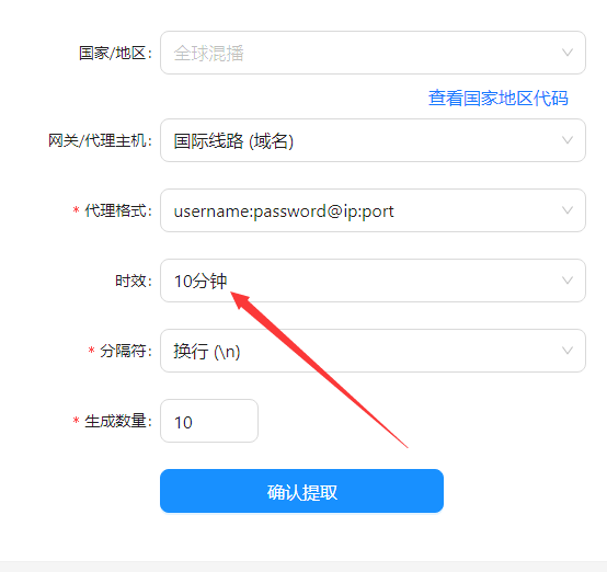 - 设置固定时效(粘性模式): 在设定的时间段内,系统会尽力为您保持同一个IP不变。例如设置5分钟,则在该时间内IP保持稳定。该模式适用于账号注册、社交媒体登录或对IP稳定性有较高要求的业务场景。