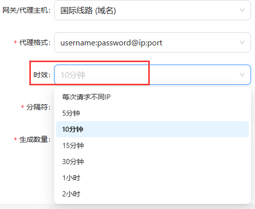 使用V2接口时,建议选择 10分钟以上 的时效以维持稳定的长连接;使用V1接口时,建议精准定位国家以获得最佳效果。