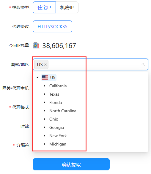 - 稳定性建议: 在使用指纹浏览器或代理工具时,建议固定选择具体国家进行提取,以获得更稳定的连接质量。