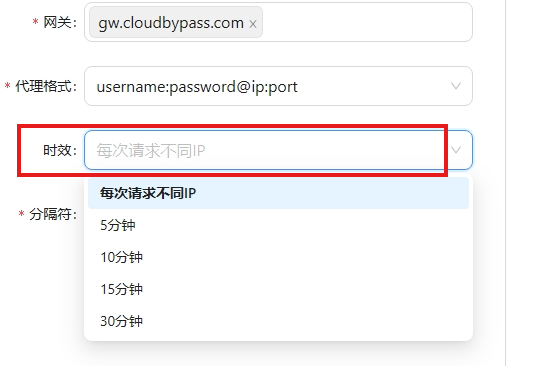 - 持续会话: 如需进行海外账号注册或复杂表单提交等需要长连接的操作,请选择指定的时效(Session)。