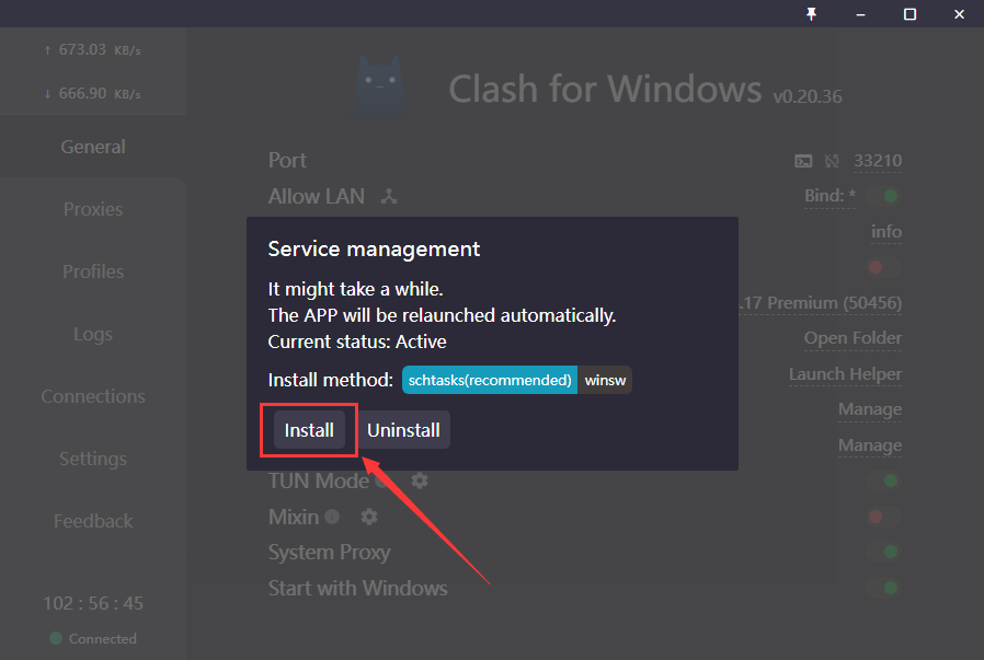 在弹出的窗口中点击 Install 进行安装,随后软件会自动重启。